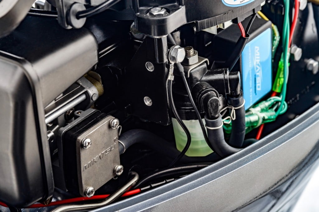 Коробка передач имеет три положения – нейтральное для запуска двигателя, переднюю и заднюю скорости. Различные режимы крепления двигателя позволят преодолевать мелководья без ущерба для винта. Усовершенствованная цифровая система зажигания CDI позволит с легкостью осуществить запуск двигателя в любых условиях, а инновационная оригинальная система подачи топлива Mikatsu (Микатсу) даст значительную экономию расхода топлива. Пятислойное лакокрасочное покрытие не только придает этому мотору красивый внешний вид, но и прекрасно защищает его от воздействия агрессивной внешней среды и дольше будет сохранять внешнее состояние мотора в эстетически достойном виде.